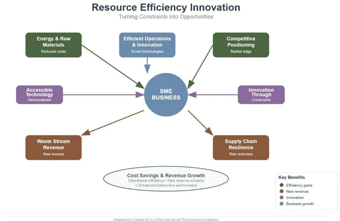 By improving resource efficiency—reducing waste, optimising energy use, and rethinking materials—SMEs can significantly cut costs while also helping the environment.